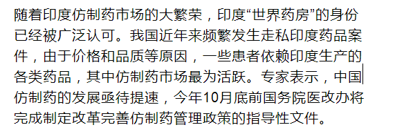 走私印度药品案件频发 仿制药是指与原研药在剂量、安全性和效力、质量、作用以及适应症上相同的一种仿制品。当专利药品保护期到期之后,其他国家和制药厂即可生产仿制药。但在印度,专利法允许药品实施强制许可,在出现“公众对于该专利发明的合理需求未得到满足”,或者“公众不能以合理的可支付价格获取该专利发明”等情况时,印度药厂在本土可以强行仿制尚在专利保护期的新药,并且可以出口到无相关生产能力的地区和国家。 在海淘仿制药案件当中,最为有名的是陆勇案。2002年,江苏无锡人陆勇被确诊患有慢粒白血病,为控制病情,他必须持续不断地服用瑞士诺华公司生产的“格列卫”抗癌药,该药品每盒售价在23000元至25000元,2004年,在自用印度仿制瑞士抗癌药“格列卫”之后认为性价比非常高且效果完全相同,此后他便开始帮助其他病友购买仿制药。2014年7月21日,湖南省沅江市检察院以妨害信用卡罪、销售假药罪对陆勇提起公诉。之后493名白血病患者联名写信,请求司法机关对陆勇免予刑事处罚。 同时,伴随着互联网科技的不断发展,网络售卖仿制药成了一种新的模式,也带来了更多问题。国家食品药品监督管理局在2014年6月曾发文提示消费者不要通过网络购买海外代购的抗癌药。同时,国家食品药品监督管理局提醒消费者,抗癌药均为处方药。根据《互联网药品交易服务审批暂行规定》,互联网禁止销售处方药。经食品药品监管部门批准的具有网上销售非处方药资质的药品零售企业有184家。然而,据不完全统计,自2010年11月至2015年初,国家食品药品监督管理局已先后9次累计公布122家违法网络购药网站,其中海外代购进口药“屡点屡上”。 国产仿制药与原研药差距明显 有专家认为,之所以走私药品案件频发,追本溯源其最核心的原因是中国的仿制药产业发展不足。究其原因,虽然有中国的专利法与印度不同的因素,但印度成为“世界药房”并不单单依靠印度法律所给予的便捷,更重要的是生产技术和药品品质的保证。 从美国市场对于印度仿制药的接纳程度上不难看出,印度仿制药除了价格低廉,更重要的是可靠的质量。据了解,在印度,目优秀药厂的生产管理规范直接遵循美国FDA(食品药品管理局)的cGMP,前境内拥有FDA认证的药厂共有119家,可向美国出口约900种获得FDA批准的药物和制药原料,拥有英国药品管理局认证的药厂也有80多家。此外,通过美国FDA认可的印度药厂生产成本比美国低65%,比欧洲低50%。加上凭借低成本制造、雄厚的技术、大量懂英语的合格技术人员与高质量产品,印度制药厂商可以获得大量外包生产合约,这又进一步推动了制药厂的规模扩张和产业创新。 而国产仿制药则在可信度上大大降低,业内人士坦言,我国仿制药的质量问题主要表现在:一些仿制药质量与原研药不一致,与国际先进水平差距较大;不同企业生产的仿制药存在质量差异,良莠不齐;同一仿制品种申报、生产的企业数量过多,重复严重。“国产仿制药稳定性较差,副作用较多,会产生过敏反应,但改成对标的原研药就好了。因此,国内知名医院医生在面对重症和特殊疾病患者时仍多推荐使用进口药,并非是从价格上的考量,更多是确保治疗的有效性。”上述人士表示。 中国仿制药发展待提速 根据此前监管机构要求,中国仿制药的一致性评价无须直接对标原研药,也可以是已经上市的仿制药,因为对标允许误差,可能会导致出现仿制药与原研药差距越来越大的现象,最终仿制药与原研药的药效彻底丧失一致性。 此外,中国药品生产厂商的工艺、流程、质量控制等关键环节漏洞较多,监管机构对于药品认证的标准与国际标准差距较大,执行力度也不足,这些因素都导致中国仿制药难以得到业界认可。 因此,中国仿制药的发展亟待提速。根据国务院确定的2017年医改重点任务,2017年10月底前将完成制定改革完善仿制药管理政策的指导性文件。 根据年初国务院办公厅印发的《关于进一步改革完善药品生产流通使用政策的若干意见》,强调要加快推进已上市仿制药质量和疗效一致性评价。《意见》中谈到,鼓励药品生产企业按相关指导原则主动选购参比制剂,合理选用评价方法,开展研究和评价。对需进口的参比制剂,加快进口审批,提高通关效率。对生物等效性试验实行备案制管理,允许具备条件的医疗机构、高等院校、科研机构和其他社会办检验检测机构等依法开展一致性评价生物等效性试验。 食品药品监管等部门要加强对企业的指导,推动一致性评价工作任务按期完成。对通过一致性评价的药品,及时向社会公布相关信息,并将其纳入与原研药可相互替代药品目录。同品种药品通过一致性评价的生产企业达到3家以上的,在药品集中采购等方面不再选用未通过一致性评价的品种;未超过3家的,优先采购和使用已通过一致性评价的品种。 业内人士建议,这个过程仍需借鉴印度药品厂商的经验,严格一致性评价标准,与原研药进行对标,同时认证标准向国际看齐,这将改变部分药企现有的生产工艺、质量控制等流程,从长远来看,这是中国药企长足发展的出路所在。