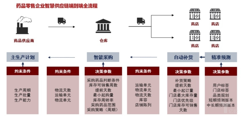 2、整个药品的供应链计划体系包括药品画像、门店画像、需求预测、补货计划、采购计划、物流计划等没有建立起来,导致各个职能各自为政,缺乏集成的统筹和调度;