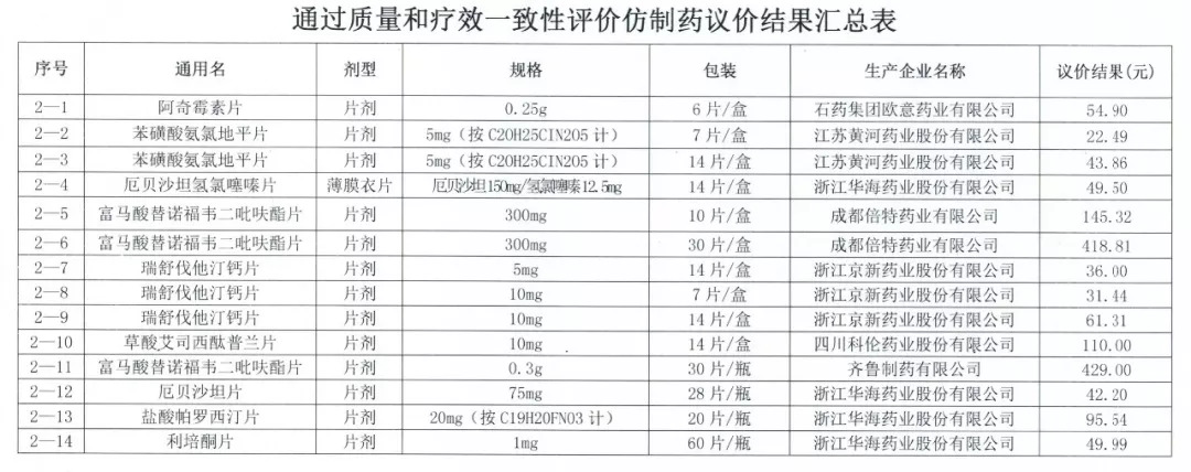 根据通知,在议价的品种中,有14个通过一致性评价的药品,全部议价成功。