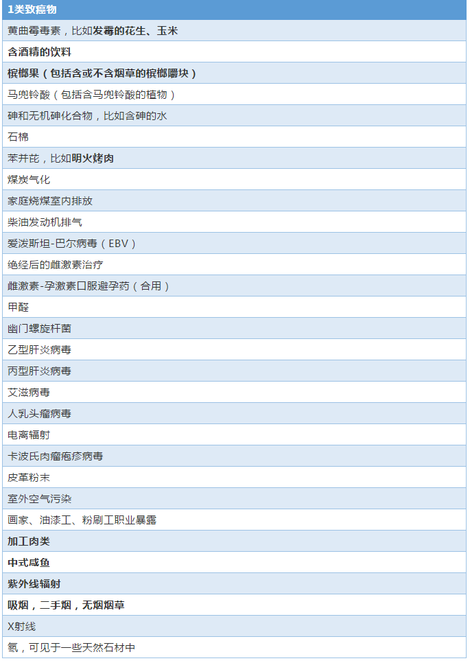 当然了,这120种1类致癌物中,很多对我们普通读者来说都很陌生。因此,e药环球从中整理了一些食物或环境中常见的致癌物清单,供大家参考。