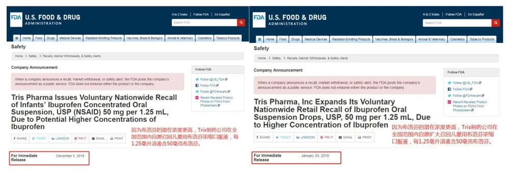 (美国FDA官网上的召回公告[2,3])