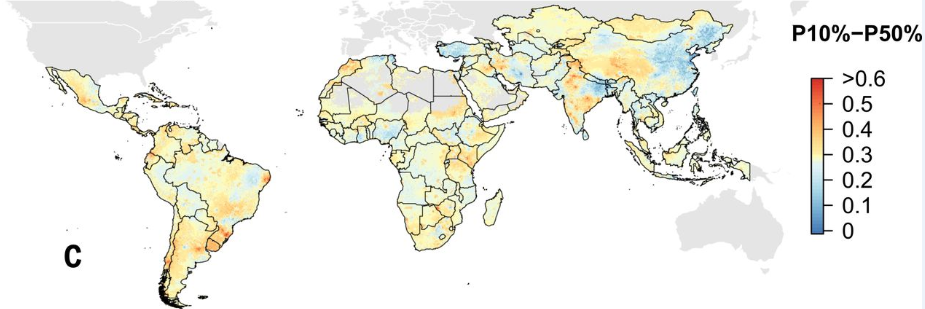 3.在中低收入国家,耐药水平表现出相当大的地理差异。动物抗生素滥用导致耐药率较高的地区排名前四位分别为:中国东北、印度东北、巴西南部、伊朗和土耳其。更让人诧异地是,到目前为止,除尼日利亚和约翰内斯堡周围地区外,非洲几乎没有出现抗生素耐药性热点。