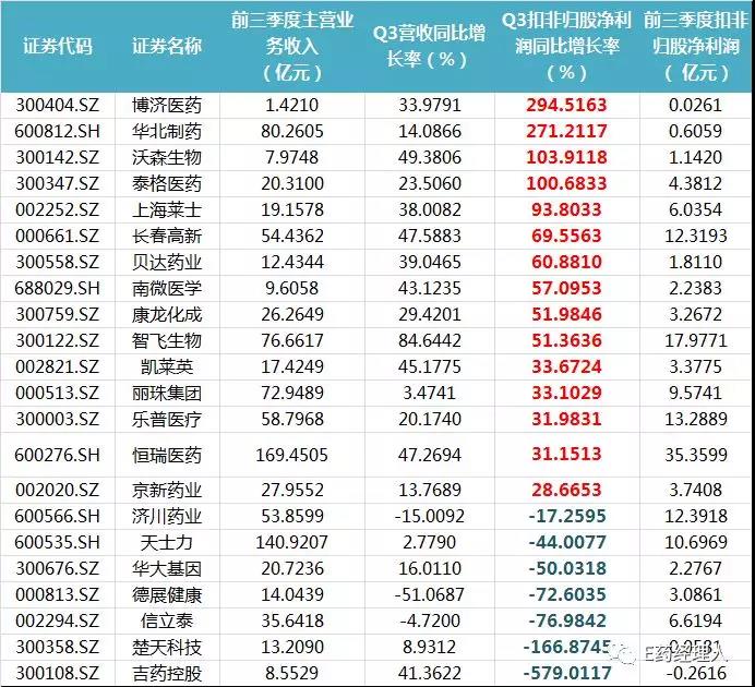 除了在正常预期内的波动之外,多家企业也表现出了“大涨大跌”的态势。其中,华北制药业绩大涨,前三季度实现营业收入80.26亿元,净利润9152.94万元,其中单季度扣非归股净利润同比增长271%。