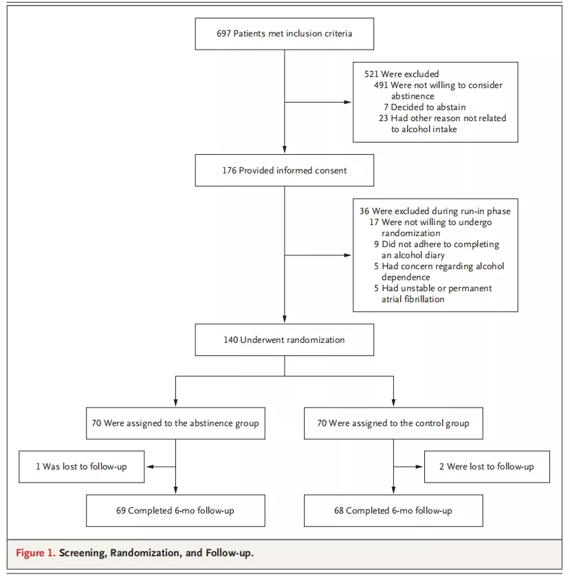 因此,本论文研究者聚焦于此,进行了一项随机对照试验,以评估戒酒对有房颤病史的患者的治疗效果。