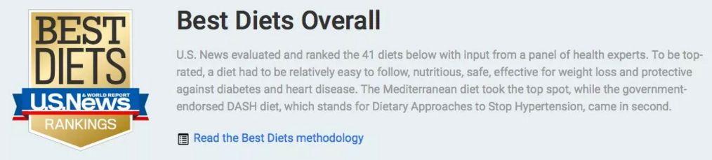 那么究竟什么样的饮食模式是专家们投票选举出来最健康的呢?1月3日,知名网站U.S. News & World Report(就是那个风靡世界,每年发布全美最佳大学排行榜、全美最佳医院等等的网站)公布了 2019年全年度的最佳饮食模式榜单。