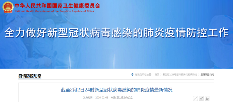 截至2月2日24时,国家卫生健康委收到31个省(自治区、直辖市)和新疆生产建设兵团累计报告确诊病例17205例(北京市核减3例,江西省核减1例),现有重症病例2296例,累计死亡病例361例,累计治愈出院病例475例,共有疑似病例21558例。
