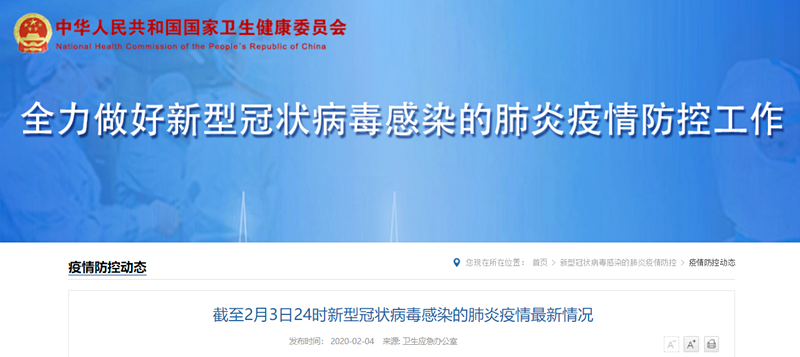 截至2月3日24时,国家卫生健康委收到31个省(自治区、直辖市)和新疆生产建设兵团累计报告确诊病例20438例(黑龙江省核减2例),现有重症病例2788例,累计死亡病例425例,累计治愈出院病例632例,现有疑似病例23214例。