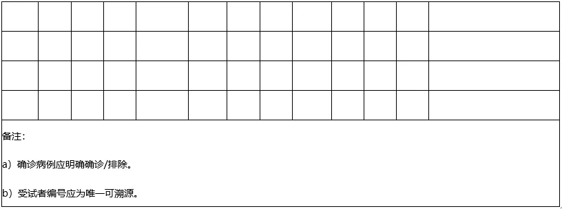 临床试验数据汇总表作为临床试验报告的附件提交。数据表中应包括检测病例的编号、年龄、性别、样本类型、临床诊断背景信息、考核试剂检测结果(含各基因的Ct值)、对比试剂的检测结果(各基因的Ct值)、新冠病毒感染的确诊或排除结果等,如临床试验中所用样本为核酸提取液,应明确该样本样本保存液(如涉及)、核酸提取试剂等。临床应用的数据集中每一病例编号应能够溯源。具体内容详见附表。