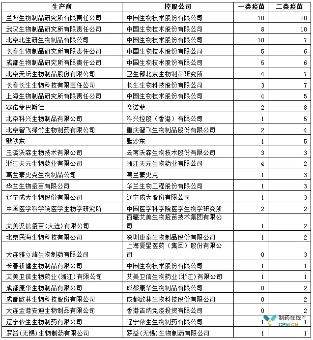 2. 疫苗45家生产企业统计:中国生物技术股份有限公司品种最多