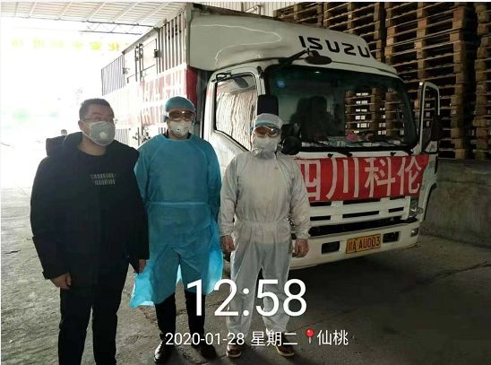 是啊!向前冲,永不放弃,科伦铁军将这种精神诠释到底。刚刚把一批救援物资送到武汉同济、协和医院的李强和李小君的工作并没有结束。22日那天下午5点,两位同志拖着疲惫的身体开始返回成都。23日早上,在距离成都还有400多公里的时候,物流部副经理李元聪的电话再次响起,这是一条折返仙桃为四川拉回急需物资的任务指令。但折返回去,来回增加1200公里路程,再坚强的毅力和身体素质也会到达极限,但李强清楚没有人比他们所处的位置更适合取回这批物资,两人决定返回武汉。24日9:00,兄弟二人经过两天三夜的辛勤奔波,终于不负公司重托,顺利返回。