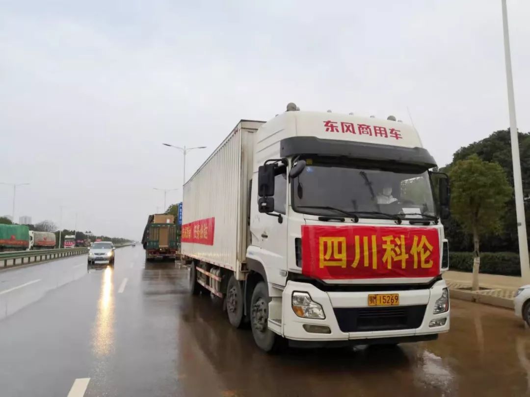 1月27日早上,四川在武汉的两支援助武汉医疗队需要物资补给,运送物资的重任再次落到科伦医贸物流部的肩上。李文俊和刘平两人踏上了支援一线同胞的奔途中。途中,他们遇到了一个小插曲,当时正是湖北仙桃下高速的时候,一辆本地的私家车摇下了车窗玻璃,面对他们俩竖起了大拇指,原来是因为看到了运输车身悬挂的横幅,在感恩同胞的友情支援。霎时间,两位同志热泪盈眶,心里装满了自豪感,更是激发了他们使命必达的责任感和信心。