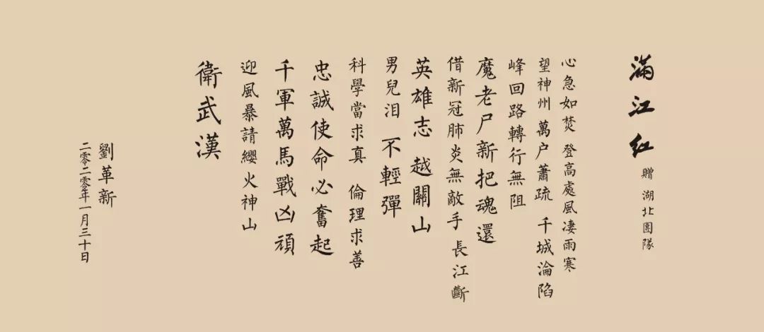 一肩明月,一片冰心,一腔热血,一往无前,一世情深,此乃大丈夫。1月30日凌晨,感念科伦全体员工使命必达的战风,更是坚信全国八方驰援、战胜疫情的定局,董事长刘革新奋然命笔,一曲《满江红》赠与前方将士: