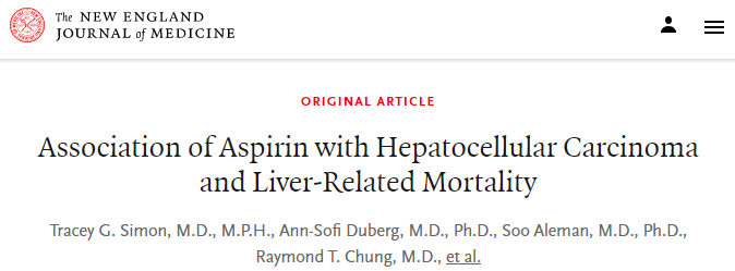 一项在超5万名瑞典慢性病毒性肝炎患者中开展的研究显示, 低剂量阿司匹林可显著大幅降低发生肝细胞癌(肝癌的主要形式) 和肝病相关死亡的风险,且不会明显增加胃肠道出血的发生率。