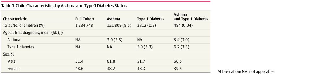 研究者招募了1284748名儿童(其中51.4%为男孩),对其病历和处方进行考察分析,发现9.5%儿童患有哮喘,0.3%患有1型糖尿病;在所有儿童当中,共有494名同时患有两种疾病,占哮喘儿童的0.4%和1型糖尿病儿童的13%,说明两种疾病确实存在相关性。