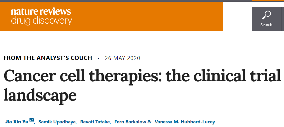[1] Yu et al. (2020). Cancer cell therapies: the clinical trial landscape. Nature Reviews Drug Discovery, doi: 10.1038/d41573-020-00099-9.