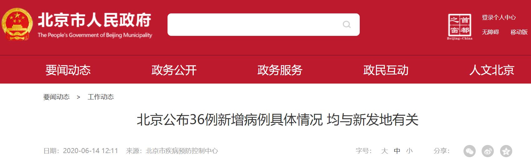 庞星火说,6月13日0时至24时,北京市新增新冠肺炎确诊病例36例,阳性检测者1例。确诊病例中男性15例,女性21例;北京户籍8例,其他省户籍28例;现住丰台区30例,大兴区4例,房山区1例,西城区1例;在新发地市场工作者27例,曾直接或间接暴露于新发地市场者9例;通过主动就医发现11例,疫情溯源筛查主动发现25例。