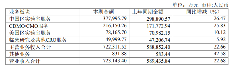 在中国和美国的临床开发业务的执行和新订单的签订严重受到 COVID-19 疫情影响,收入增长阶段性放缓。但上半年中国区实验室服务和CDMO/CMO服务板块的增长,削弱了影响。