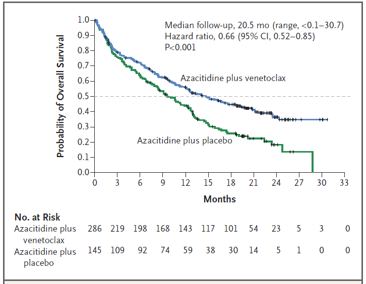 [2] DiNardo et al., (2020). Azacitidine and Venetoclax in Previously Untreated Acute Myeloid Leukemia. The New England Journal of Medicine, DOI: 10.1056/NEJMoa2012971