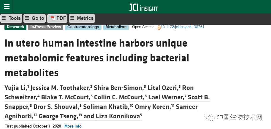 通过建立肠道微生物组来实现共生微生物定植对于许多肠道功能至关重要,包括营养代谢、肠道屏障完整性和免疫调节。但关于胎儿是否存在肠道微生物组是存在争议的,并且子宫内是否存在微生物衍生的代谢产物也尚不清楚。这项新研究的目的是确定细菌DNA和微生物衍生的代谢产物是否可以在妊娠中期的人肠道样本中检测到。