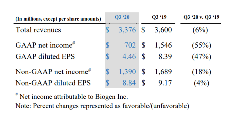 2.BIOGEN REPORTS Q3 2020 RESULTS
