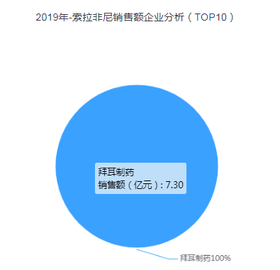 据拜耳年度报告显示,2018年,拜耳的索拉非尼销售额为7.12亿欧元;2019年为7.06亿欧元。另据药智数据企业版医院销售数据显示,索拉非尼国内样本医院销售额达7.30亿元,被原研企业垄断。