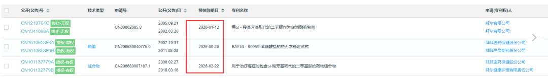 另据药智专利通数据显示,德国拜耳就该产品在中国布局了化合物、晶型、制剂、制备方法等专利,其中化合物专利CN00802685.8在中国于2020年1月到期;晶型专利CN200580040775.0有效期至2025年9月;制剂专利CN200680007187.1有效期至2026年2月。