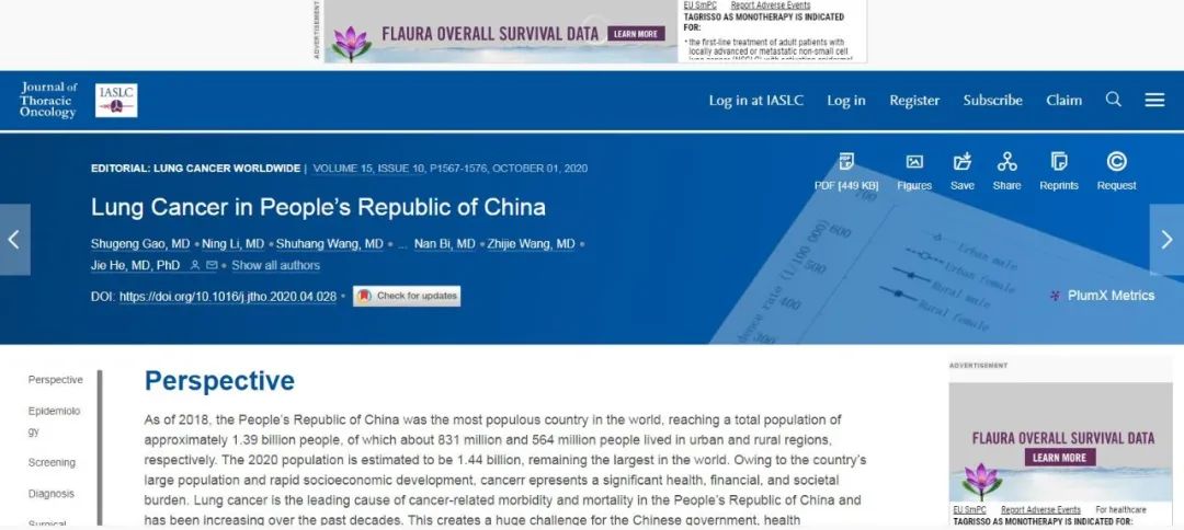 日前,国家癌症中心、中国医学科学院肿瘤医院在国际肺癌研究联合会旗下期刊《胸部肿瘤学杂志(JTO)》发布了最新中国肺癌报告,该报告列出了我国肺癌发病及死亡的最新数据,并对我国肺癌筛查防控、规范化诊断及手术、放疗、全身治疗等治疗手段的发展现状,进行了系统介绍。