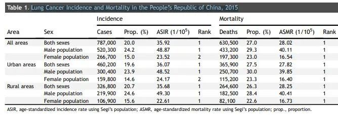 报告统计数据显示,2015年中国新确诊的肺癌病例总数约为78.7万(由于全国肿瘤登记中心的数据一般会滞后数年,此次报告发布数据为2015年登记资料),这也意味着每天有超过2100人被确诊为肺癌,每分钟有1.5人确诊肺癌,位居国内恶性肿瘤发病率首位。