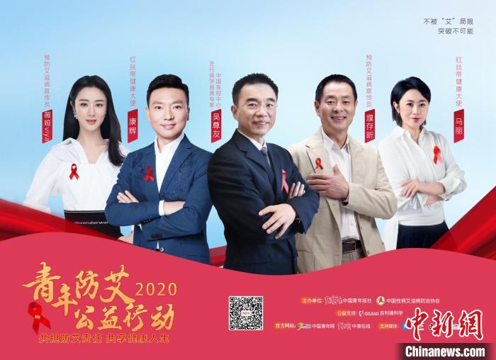 中国疾控中心流行病学首席专家吴尊友、预防艾滋病宣传员濮存昕、红丝带健康大使康辉、红丝带健康大使马丽以及预防艾滋病宣传员薇娅等助力2020青年防艾公益行动。 李来全 摄