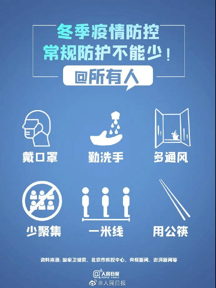 专家建议,在个人防护方面,广大民众在冬季继续坚持戴口罩、勤洗手、常通风、“一米线”等良好的卫生习惯。在春节等节假日期间,要关注交通、旅游等信息,注意错峰出行。尤其要全程做好个人防护,尽量避免前往人员集中的密集场所,出现可疑症状后,一定要佩戴口罩,并及时就近就医。