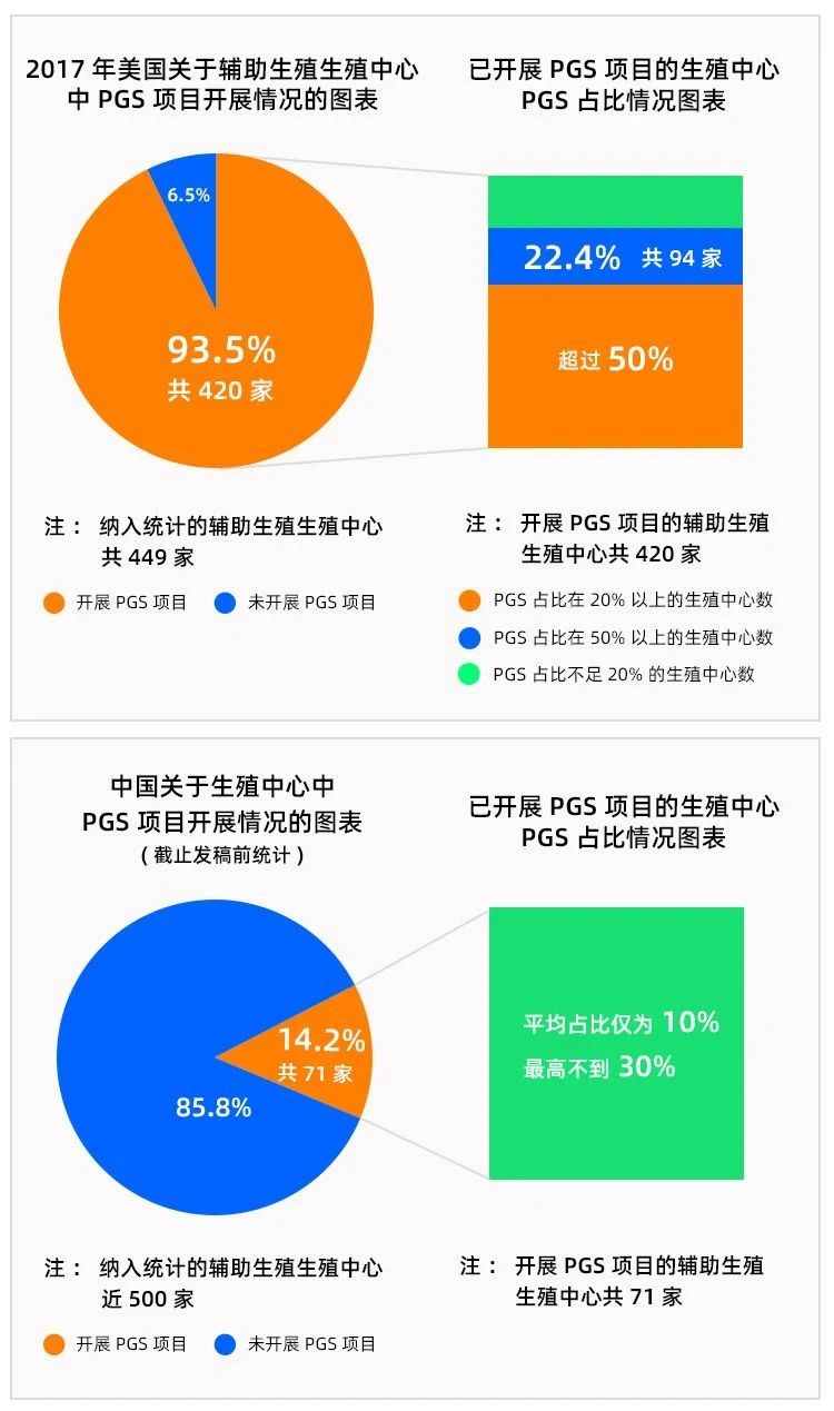 在全国近 500 家辅助生殖中心里,只有约 70 家提供第三代技术服务,占比仅为 14.2%,PGS/PGD 项目在这些生殖中心中的全年试管婴儿周期中平均占比仅为 10%。