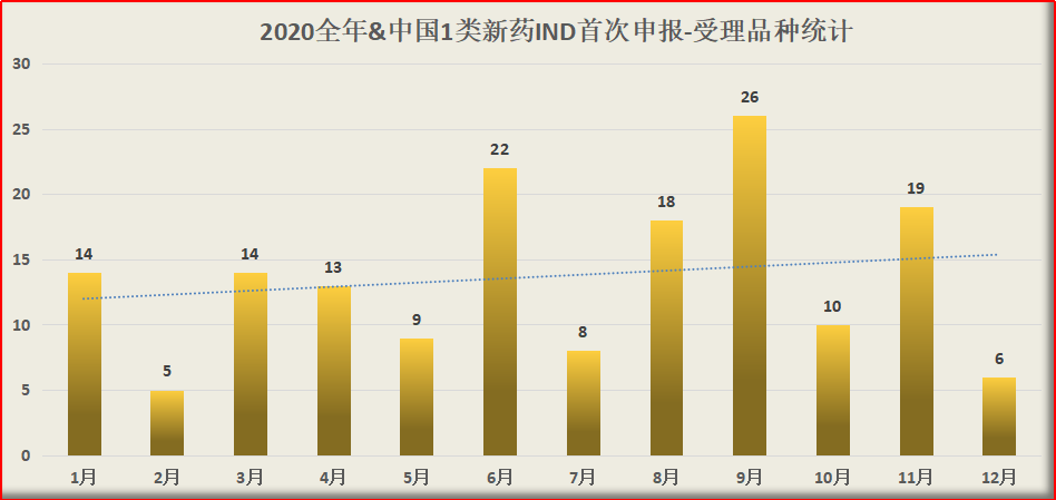 2020全年中国1类新药IND整体走势