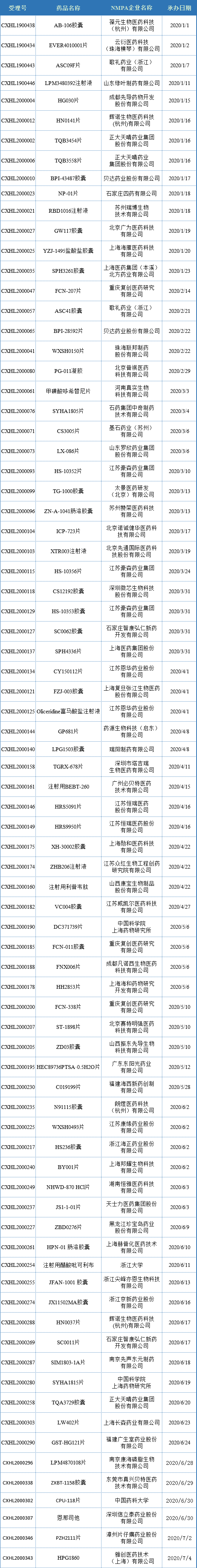 2020全年首次申报-受理/具体IND品种介绍