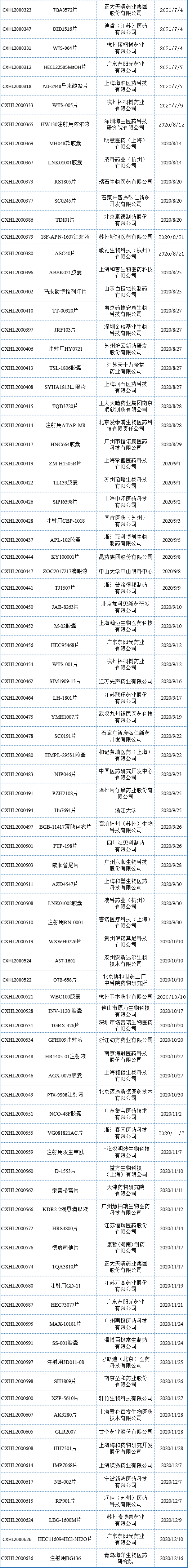 附表1.1 2020全年中国1类新药IND首次申报