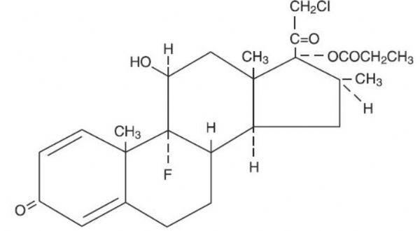 氯倍他索丙酸脂,即丙酸氯倍他索或丙酸氯倍米松,其属于糖皮质激素家族中的一员,为抗炎皮质类固醇,可作用于各种皮肤病。外用适用于慢性湿疹、神经性皮炎、银屑病等糖皮质激素外用治疗有效的瘙痒性及非感染性炎症性皮肤病。氯倍他索丙酸脂具有较强的抗炎、抗瘙痒和毛细血管收缩作用,其抗炎作用约为氢化可的松的112.5倍,倍他米松磷酸钠的2.3倍,氟轻松的18.7倍。同时具有抑制细胞有丝分裂的作用,能有效地渗透进皮肤角质层。