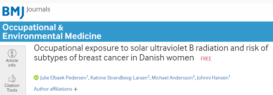2021年2月2日,丹麦癌症协会的研究人员在 BMJ 子刊" Occupational and Environmental Medicine"上在线发表了题为"Occupational exposure to solar ultraviolet B radiation and risk of subtypes of breast cancer in Danish women"的研究,研究表明多晒太阳与晚发性乳腺癌之间呈负相关。