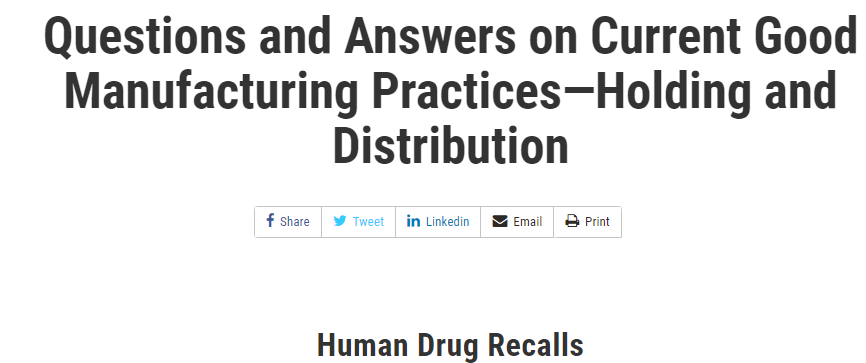 药品召回是指药品生产企业按照规定的程序收回已上市销售的存在安全隐患的药品。在cGMP以下问答指南中,FDA对于药品召回的相关要求,以问题解答的方式给予了详细的说明。