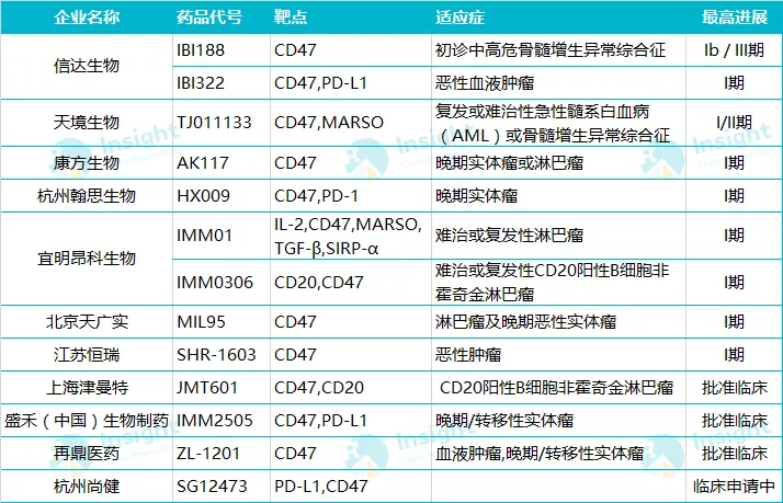 目前国内在研的 CD47 靶点单抗及进展