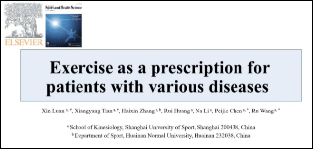 2020年,由上海体育学院运动科学学院和淮南师范大学体育系的专家共同发表的《26种人类疾病的运动干预指导方案》,刊登在《运动与健康科学》(JSHS)英文版上,研究人员通过对26种疾病的运动干预证实,运动可对疾病的预防和康复发挥积极作用。[3]