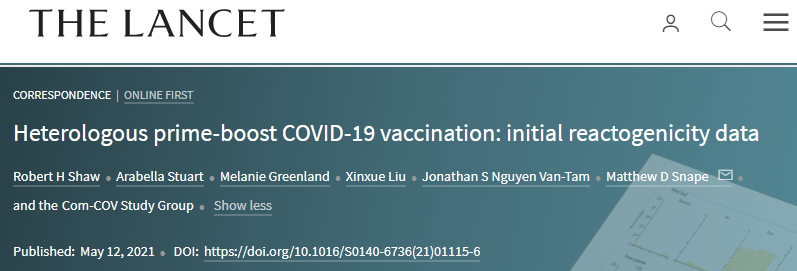 研究通讯作者、牛津大学疫苗学教授Matthew Snape博士补充谈到,“重要的是,(研究采用的混合接种方案)没有安全问题或信号,但这并不能告诉我们免疫反应是否会受到影响。我们希望在未来几个月内报告这些数据。”