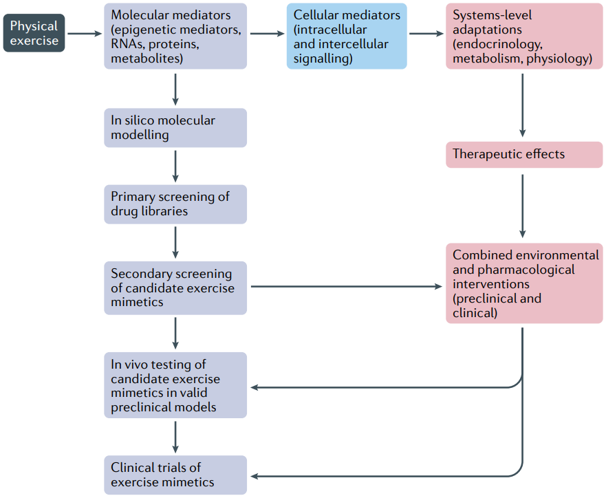 近日,来自澳大利亚弗洛里神经学与心理健康研究所的研究人员就探讨了与运动带来的有益影响有关的分子机制和信号通路,为“运动药片”的临床化奠定了基础。相关报告以Exercise mimetics: harnessing the therapeutic effects of physical activity为题发表在 Nature 子刊Nature Reviews Drug Discovery 上1。