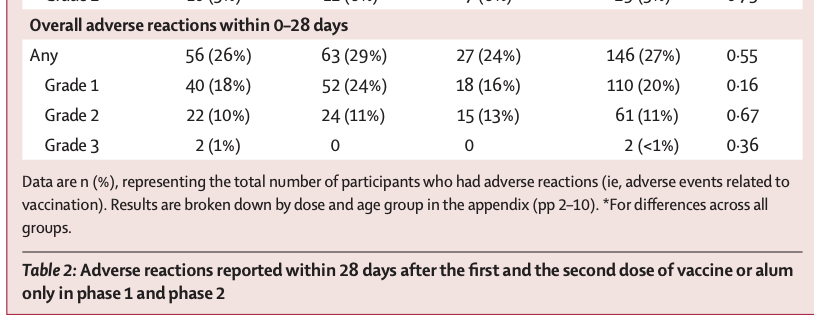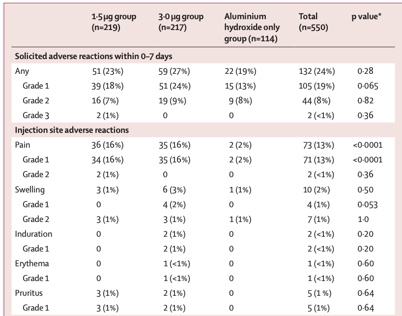 3μg 组 :217 名参与者中有 63 名 (29%)发生了 28 天内的不良反应