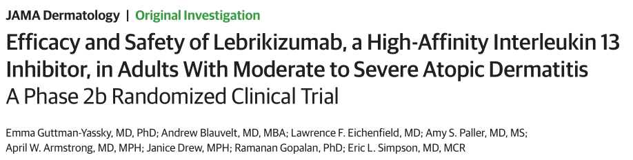 5.Efficacy and Safety of Lebrikizumab, a High-Affinity Interleukin 13 Inhibitor, in Adults With Moderate to Severe Atopic Dermatitis doi:10.1001/jamadermatol.2020.0079