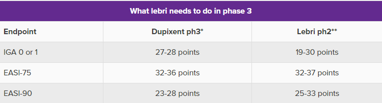 报告显示,礼来希望lebrikizumab能够在第三阶段赶上Dupixent,lebrikizumab有几个优势可能有助于其项目获得市场份额。第一,更方便的给药方式,每四周一次,Dupixent为每两周一次:第二,安全,早期的lebrikizumab试验发现结膜炎发生率低,这也是Dupixent的一个常见的不良反应。第三,lebrikizumab在止痒方面表现不错。Dupixent的两个关键性特应性皮炎试验Solo 1和Solo 2的主要终点是相同的IGA测量,为lebrikizumab提供了一个基准。