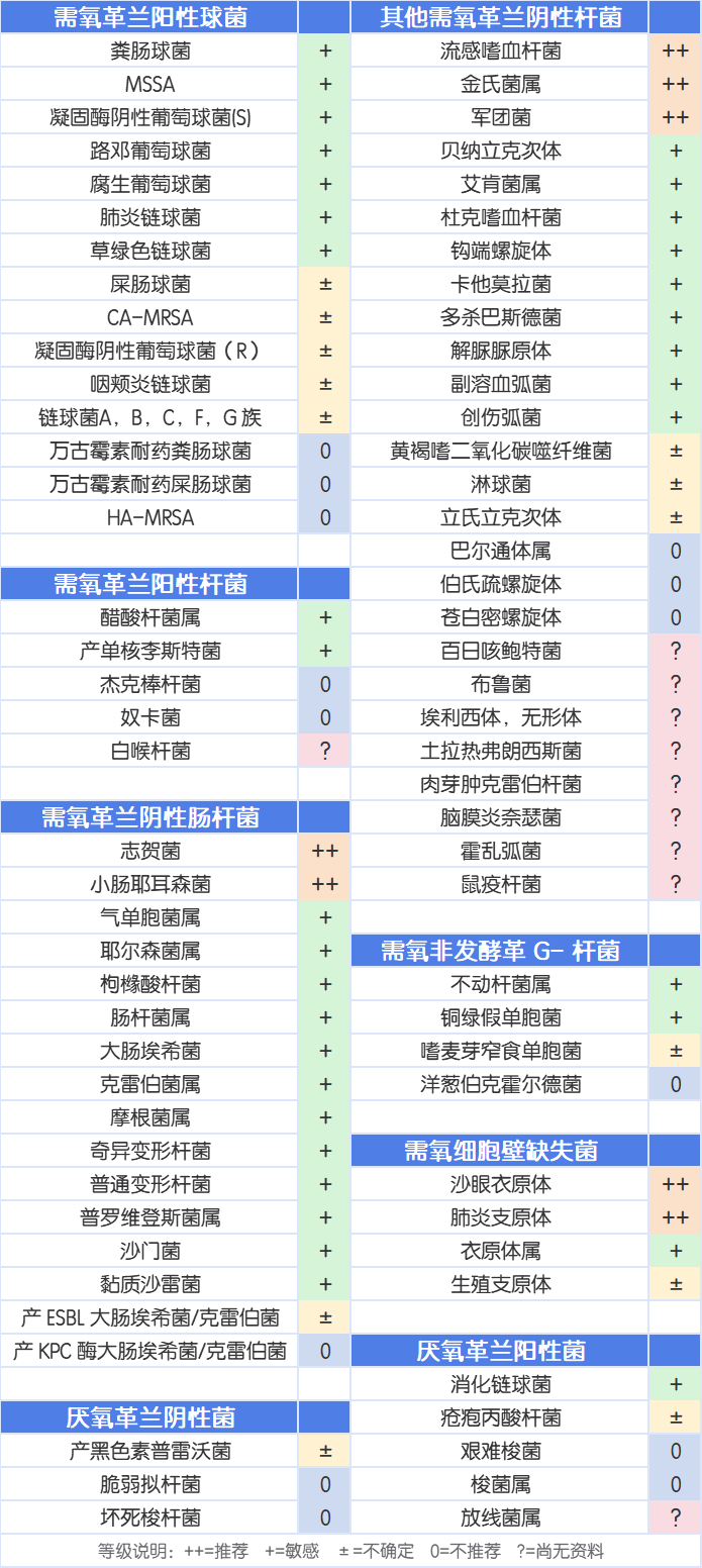 (7)其它感染:乳腺炎、外伤、烧伤及手术后伤口感染、腹腔感染(必要时合用甲硝唑)、胆囊炎、胆管炎、骨与关节感染以及五官科感染等。