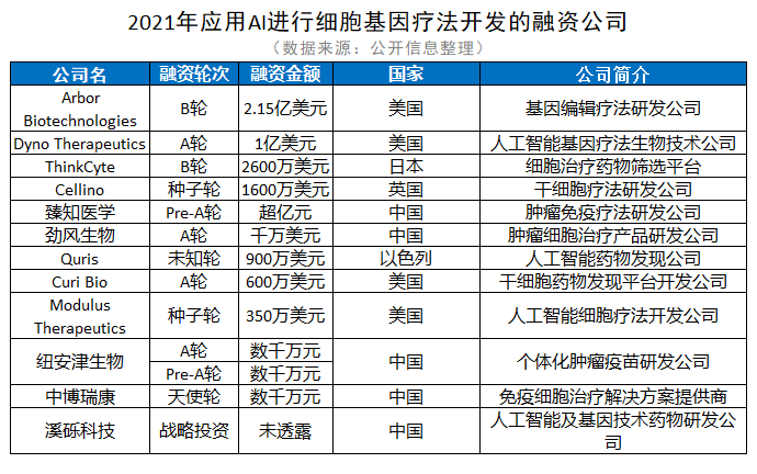 AI领域细胞基因疗法开发公司简介