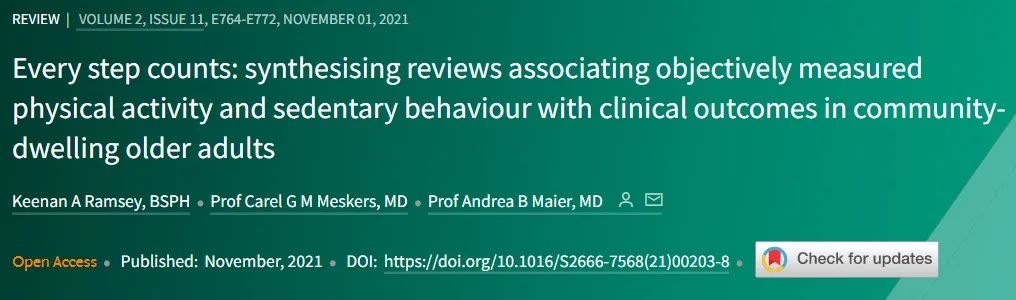 Every step counts: synthesising reviews associating objectively measured physical activity and sedentary behaviour with clinical outcomes in community-dwelling older adults. https://doi.org/10.1016/S2666-7568(21)00203-8