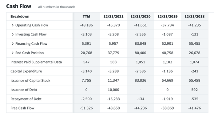 但Genocea的利好信号及重组计划,没有说服谁给他再注资,截至2022年1季度账上的现金及现金等价物余额,仅剩下2013.7万美元,现金流表各项指标也出现赤字。