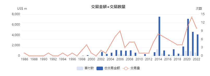 伴随着Comirnaty带来的庞大现金流,2020年开始辉瑞的交易合作也越加频繁。2021年,交易合作数量达到新高。但是,交易合作的总金额并未创造新高,似乎体现了辉瑞在合作并购上的态度。