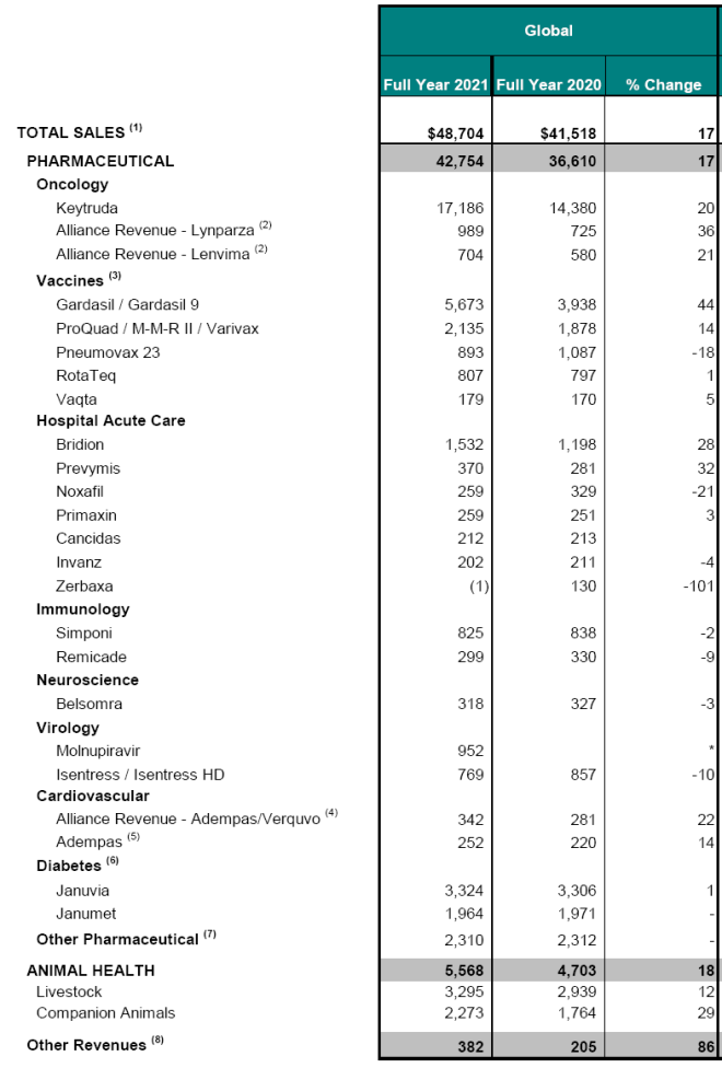 默沙东2021年财报